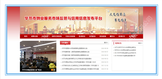 在毕节市住房和城乡建设局指导下,为了满足毕节市住房和城乡建设局对物业服务企业进行从业主体管理、项目管理、维修资金管理、信用管理,建立动态管理与信用管理相结合的市场监管模式,做好信息统计分析和发布工作的需要,进一步提升本市物业服务企业监管工作水平和信息化水平,组织开发了《毕节物业服务市场监管与信用信息发布平台》目前平台已在毕节市全面应用,涵盖市县级用户40个、街道用户100个、企业用户300个、业主用户180210个。系统上线以来,获得了一致好评。